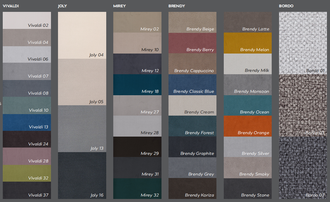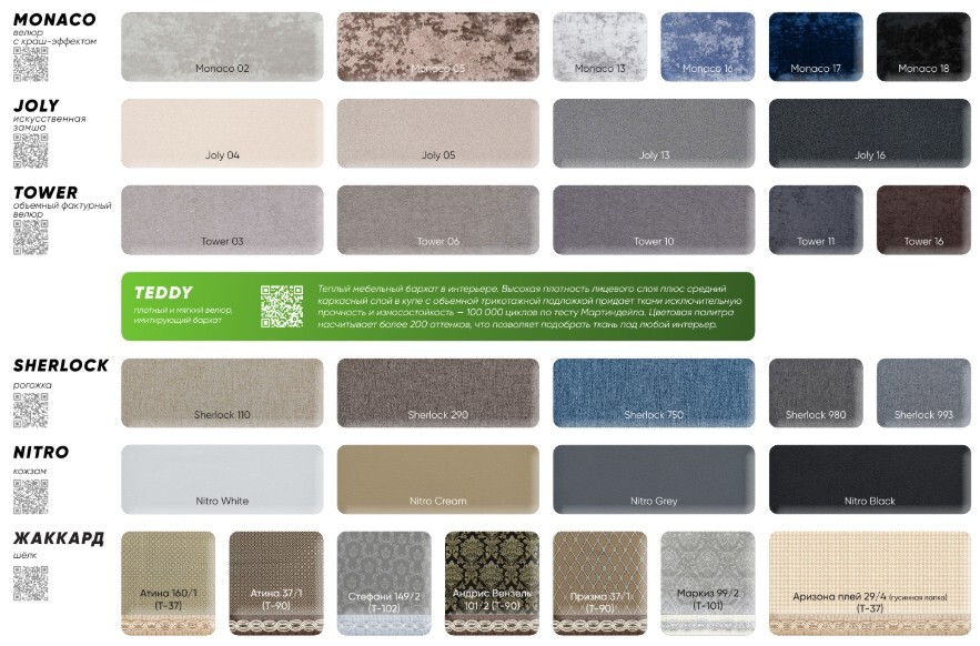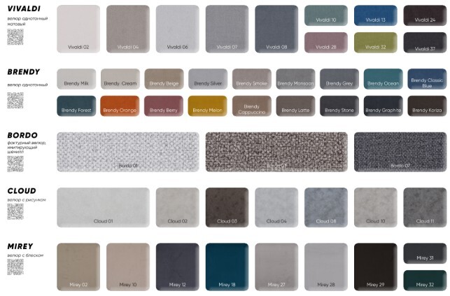 Материал обивки: рогожка, шёлк, велюр.