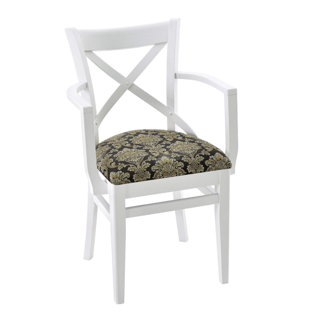 Стул на металлическом каркасе с подлокотниками и вкладным сиденьем на металлических опорах, окрашенных порошковой краской (белый/черный/ бежево-серый). Ш58 Г44 В86