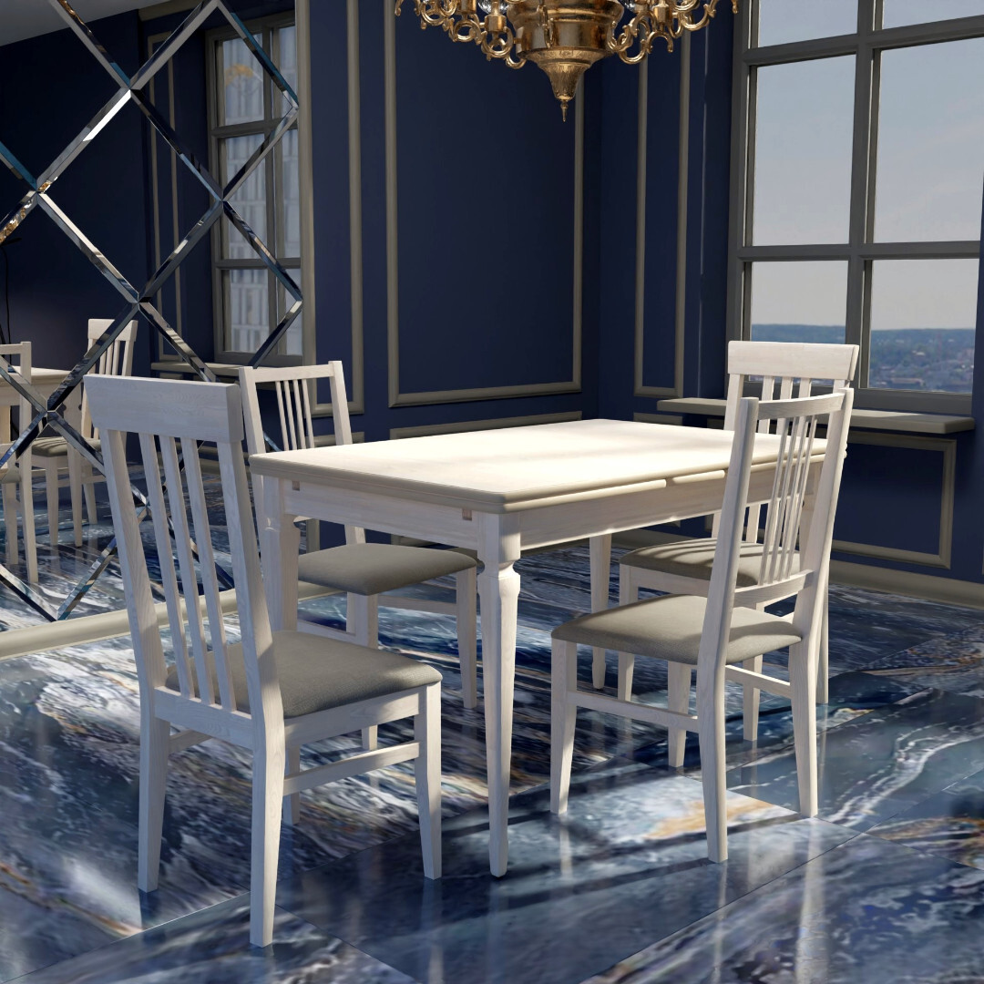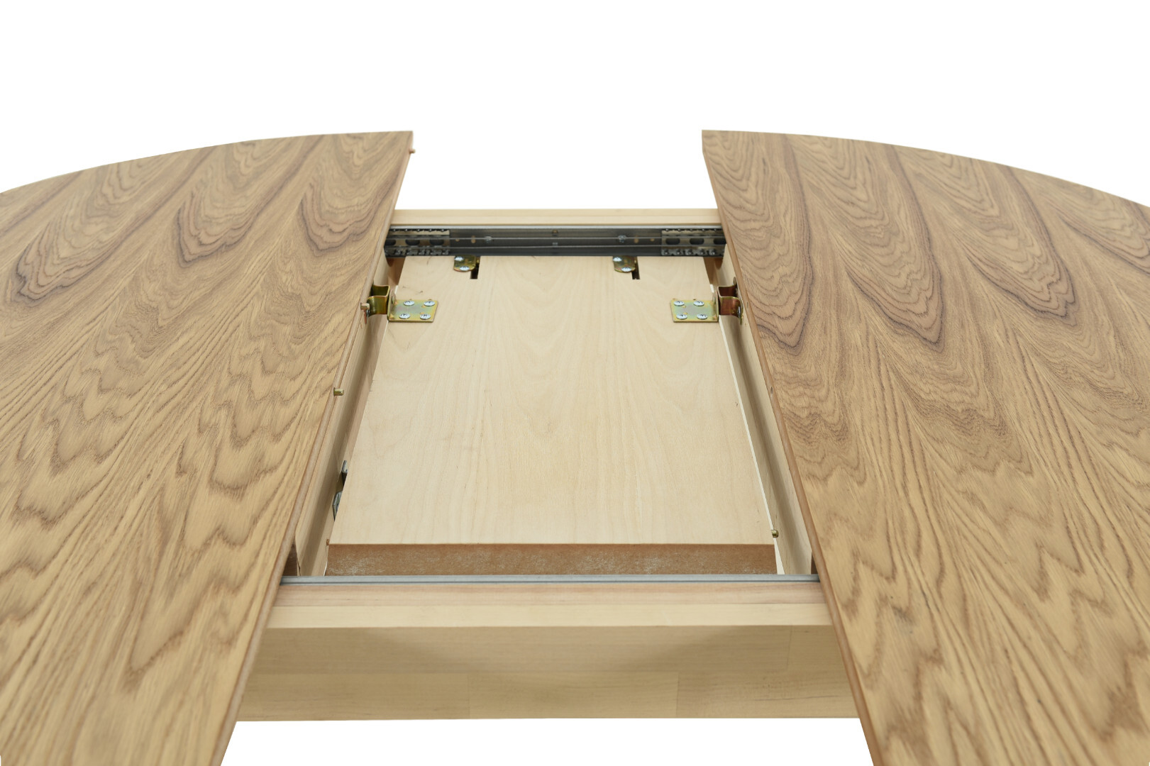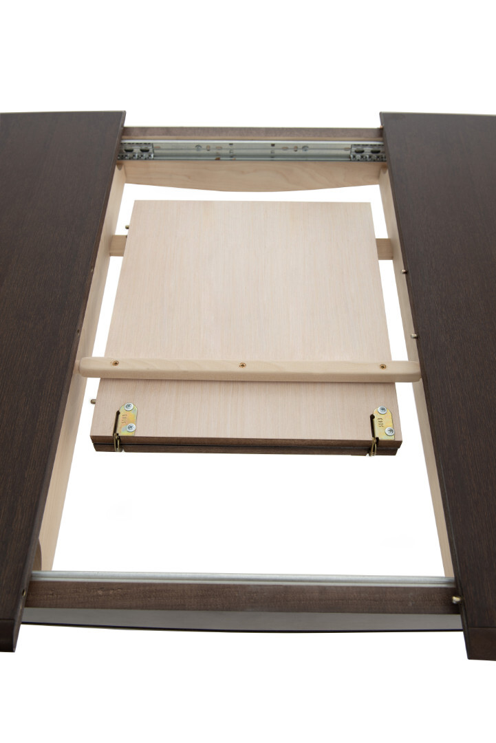Стол обеденный раздвижной из массива березы. Система трансформации столешницы: боковые вставки.