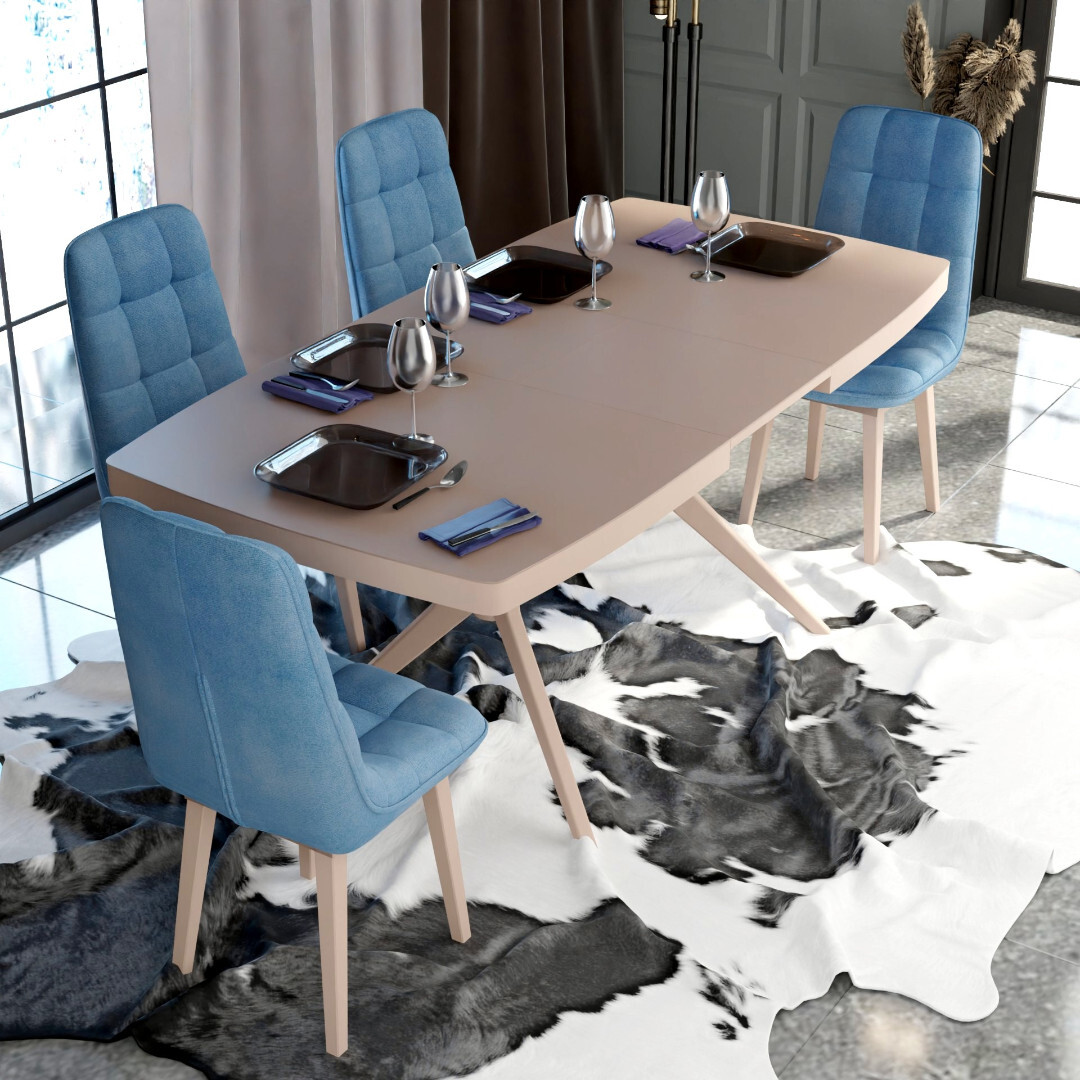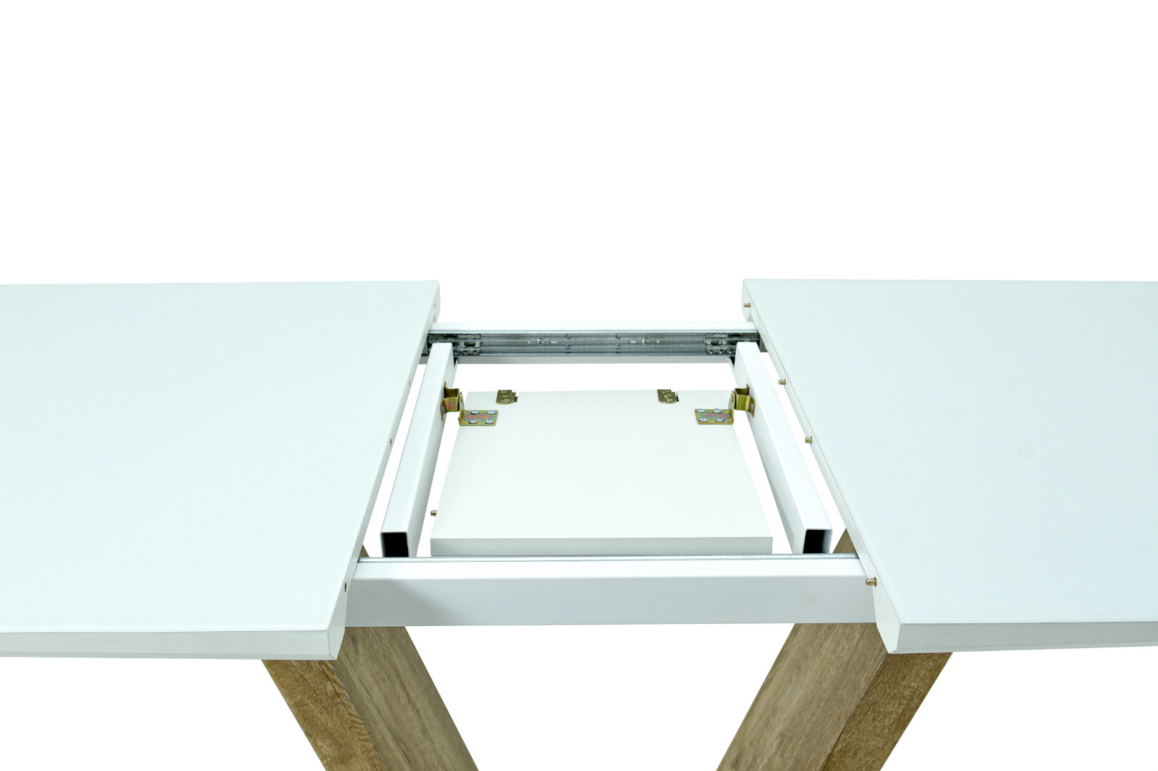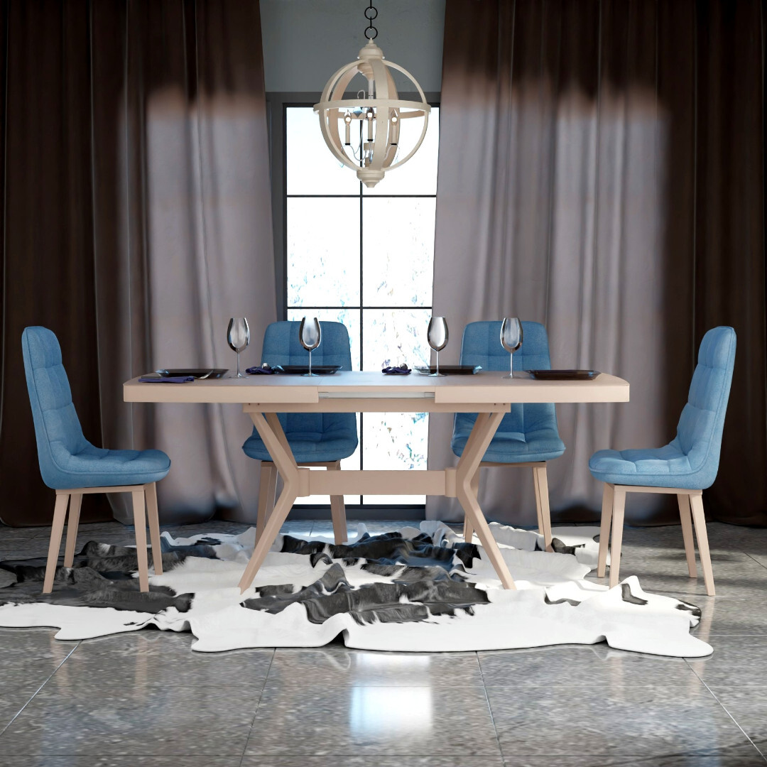 Стол обеденный раздвижной из массива березы. Система трансформации столешницы: боковые вставки.