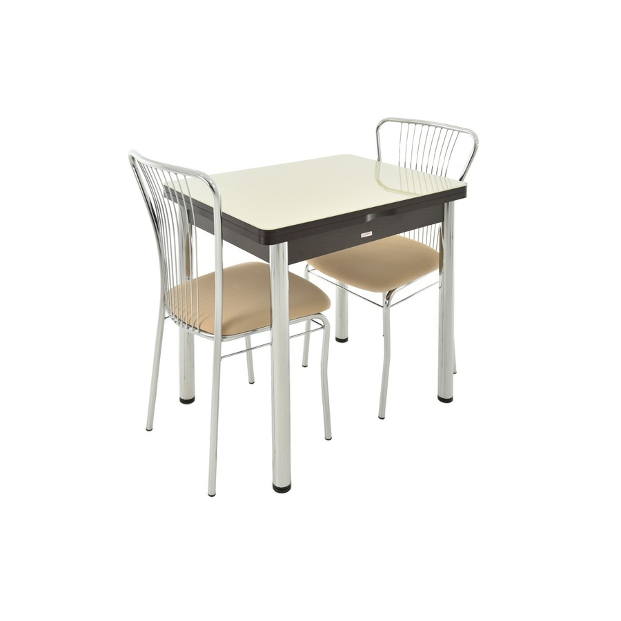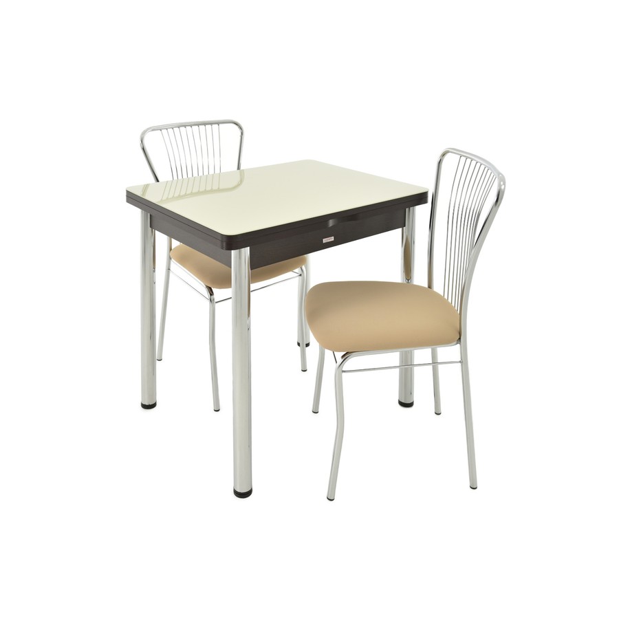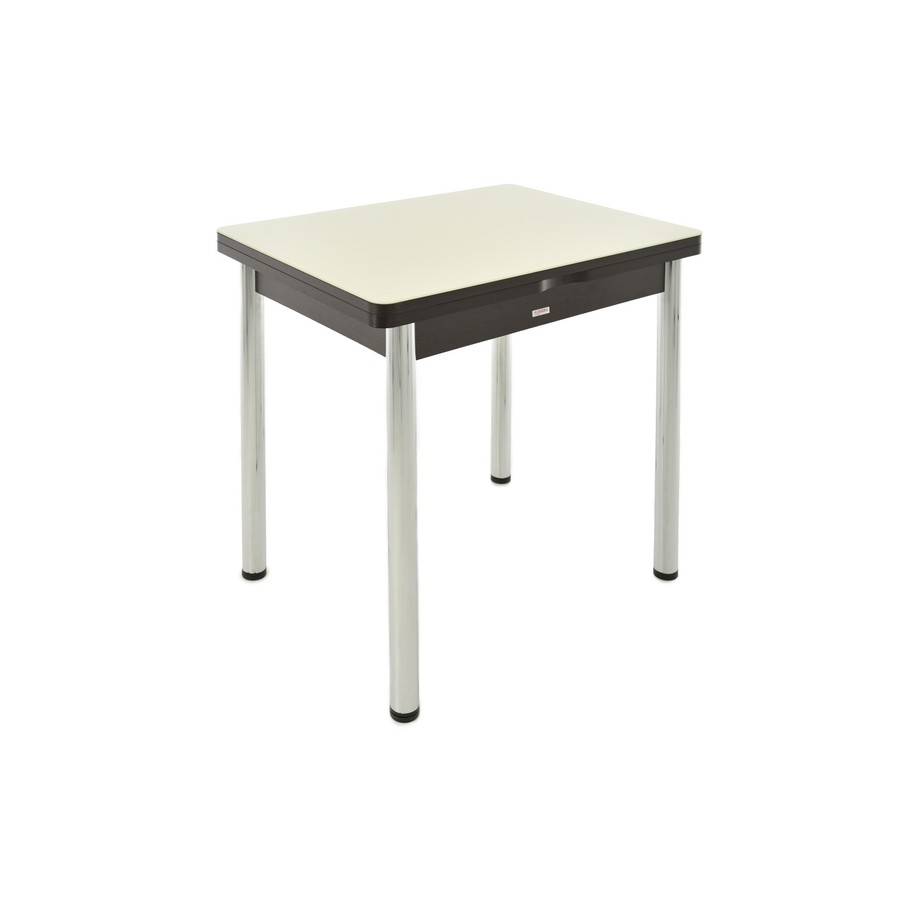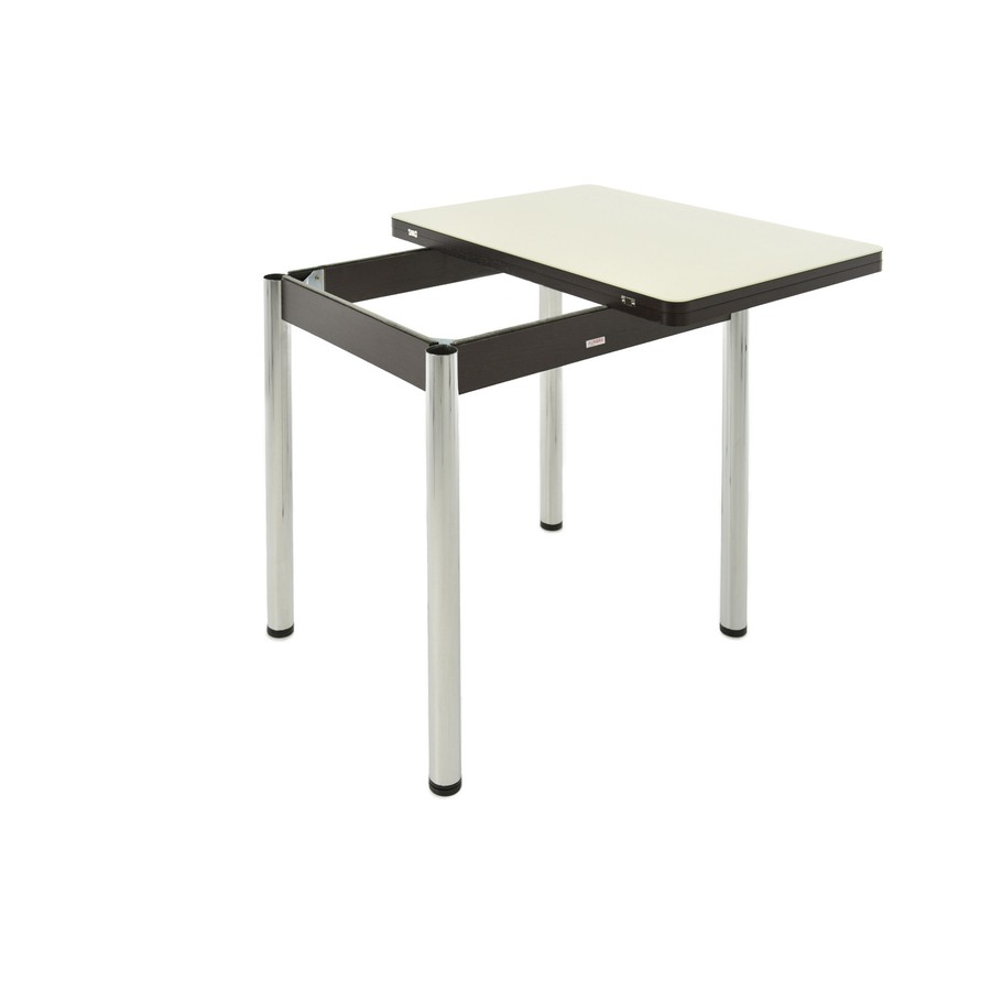 Преимущества: - Стол для небольших кухонь. Размер стола можно увеличить в два раза благодаря простому механизму трансфомации. - Низкая цена по отношению к конкурентам. - Форма столешницы без острых углов является безопасной. - Возможность комплектовать стол разными типами ног и подбор к ним разных видов стульев (метал./дерево).