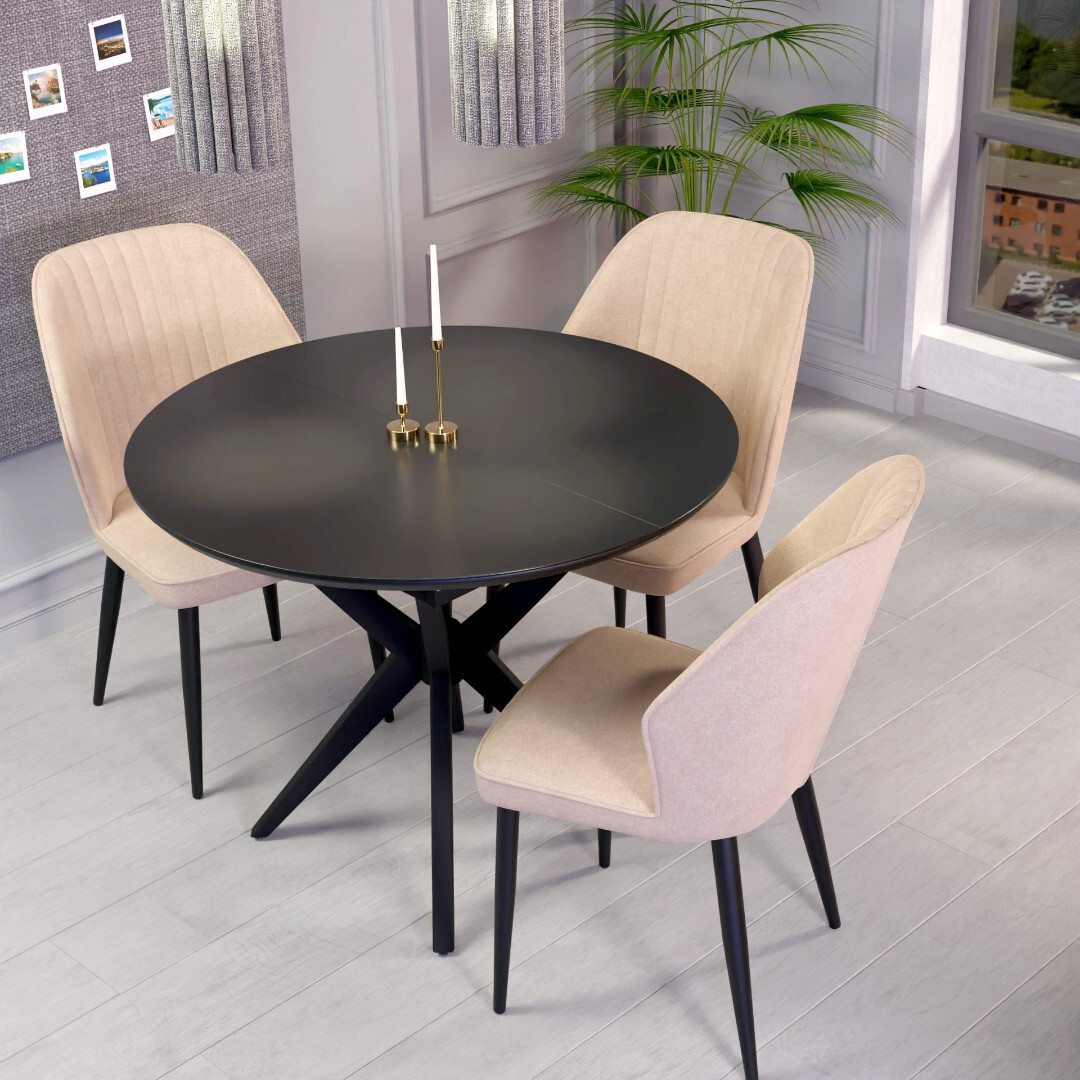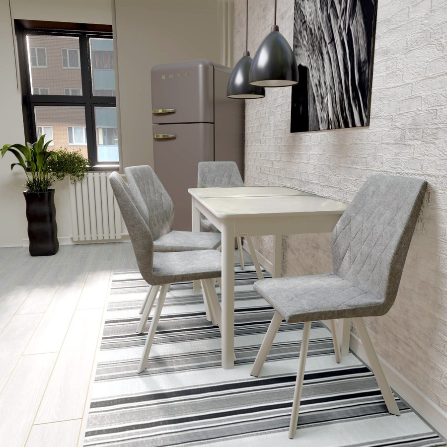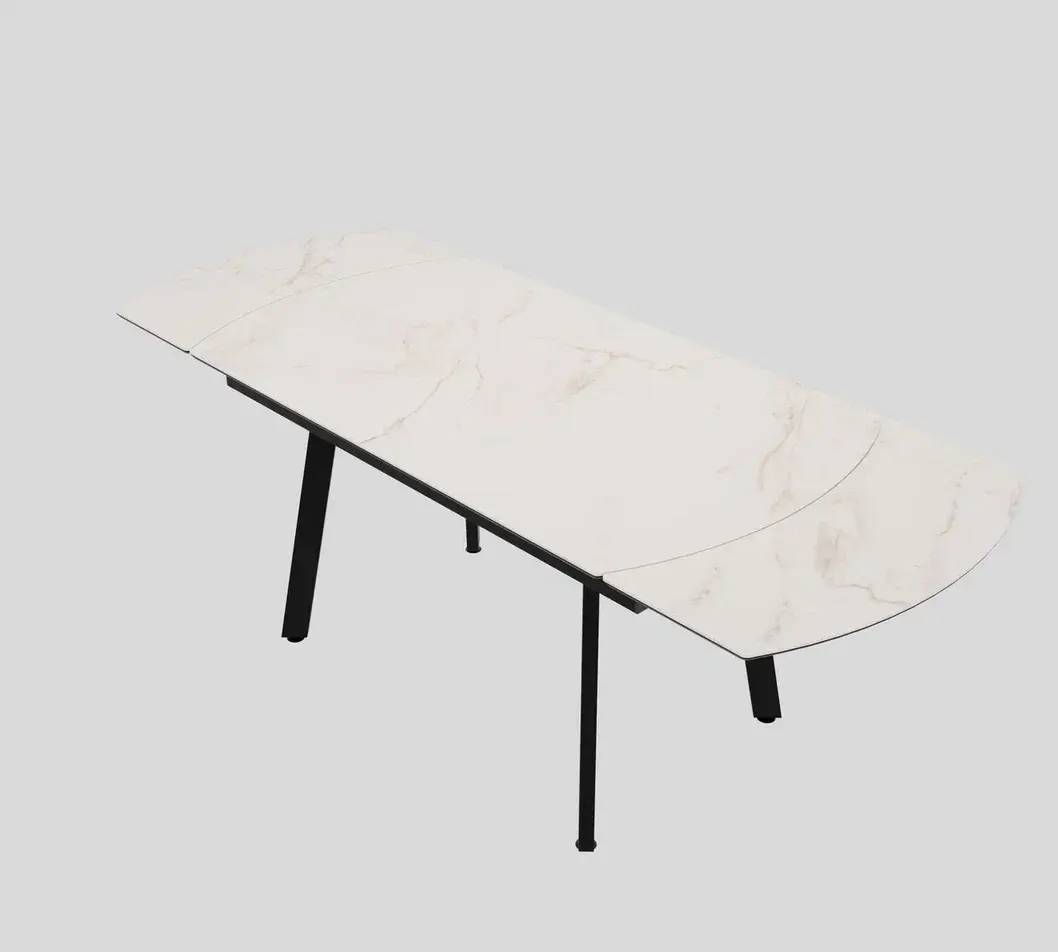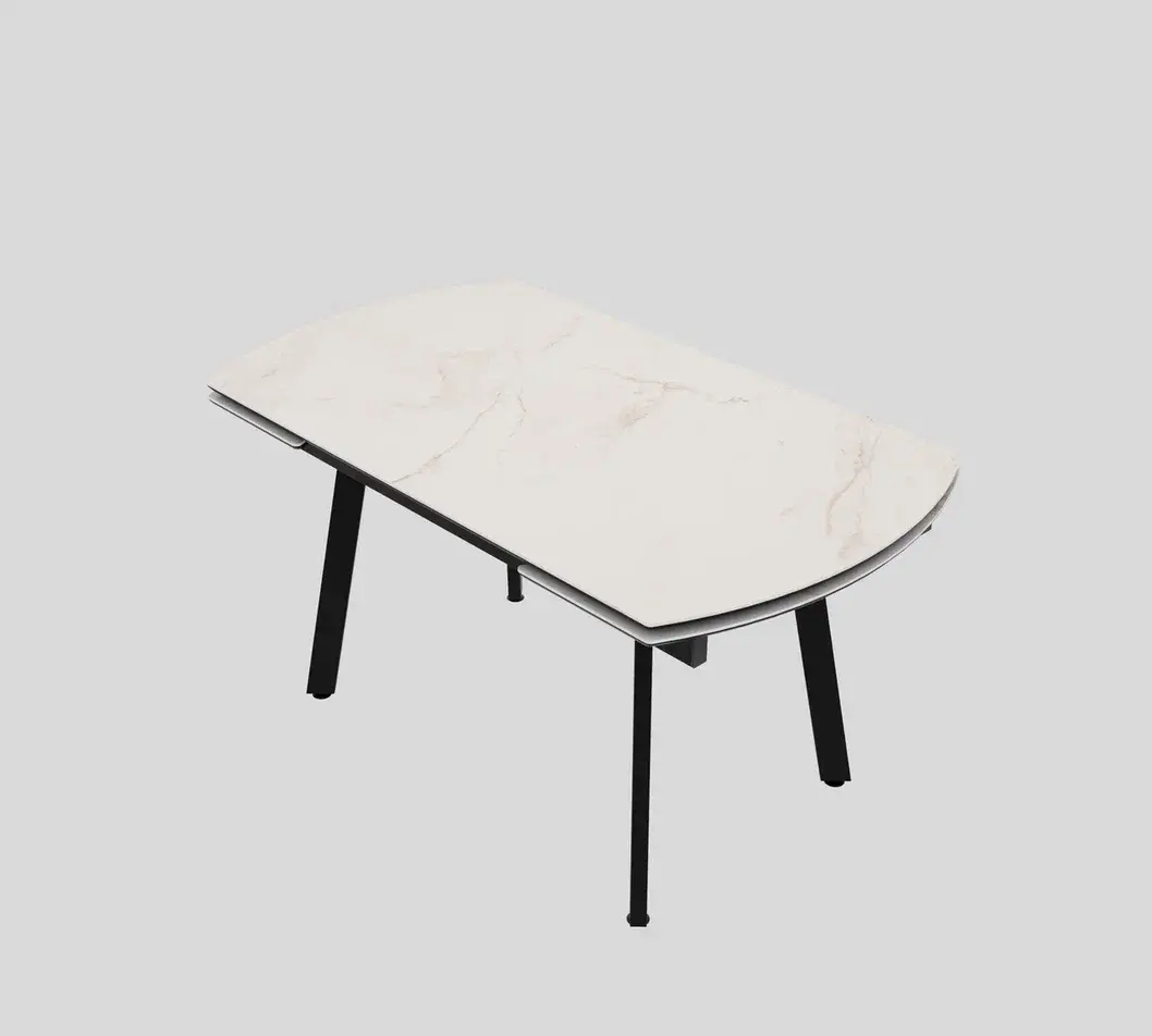 Преимущества: - Стол для небольших кухонь. Размер стола можно увеличить в два раза благодаря простому механизму трансфомации. - Низкая цена по отношению к конкурентам. - Форма столешницы без острых углов является безопасной. - Возможность комплектовать стол разными типами ног и подбор к ним разных видов стульев (метал./дерево).