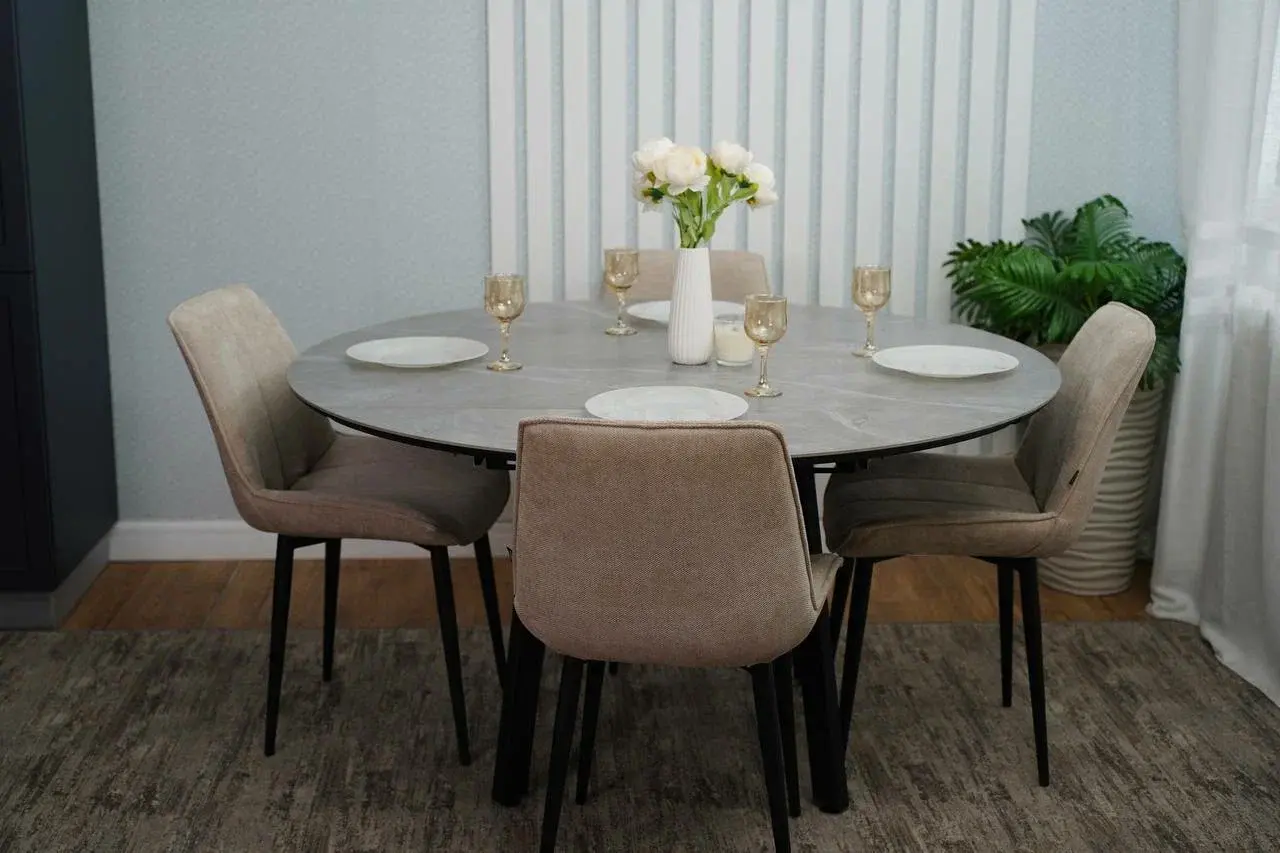 Этот материал не только прочный и долговечный, но и обладает прекрасной эстетикой, которая никого не оставит равнодушным. Функциональная столешница превращающаяся в идеальный круг и способная сделать любое застолье, по-настоящему, комфортным. Регулируемые, и в тоже время, шарнирные опоры позволяют выставить стол по уровню на любой поверхности.