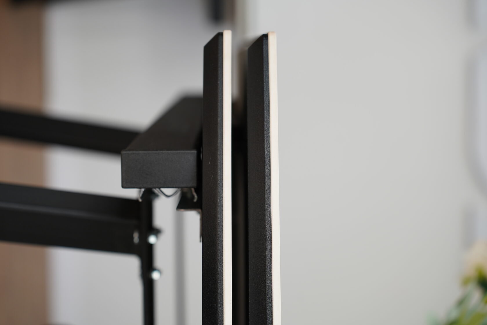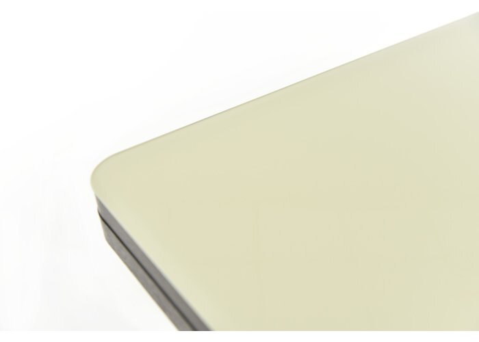 Столешница: состоит из двух частей, верхняя - ЛДСП 12 мм. + 4 мм. закаленное стекло, вторая – ЛДСП 16 мм, в сложенном виде - 32 мм.