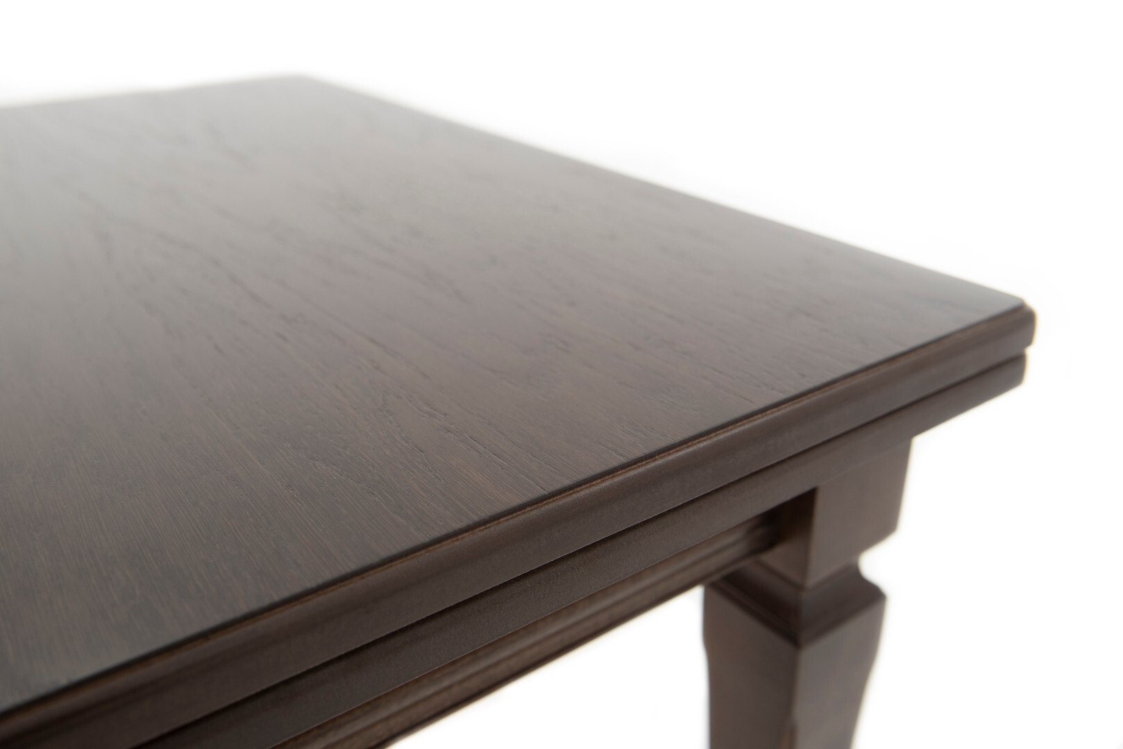 Преимущества: - Классический стол из массива березы - Оригинальная фрезеровка на ножках и царговом поясе делает стол более изысканным - Простая система трансформации позволяет увеличивать стол в 2 размера (вставки можно выкатывать по одной) - Возможность исполнения в патине и в патине с прорисовкой на столешнице - 13 вариантов покраски и 4 варианта патины - Использование качественных ЛКМ позволяет продлить срок службы стола - Гладкая поверхность столешницы за счет шлифования шпона и грунта