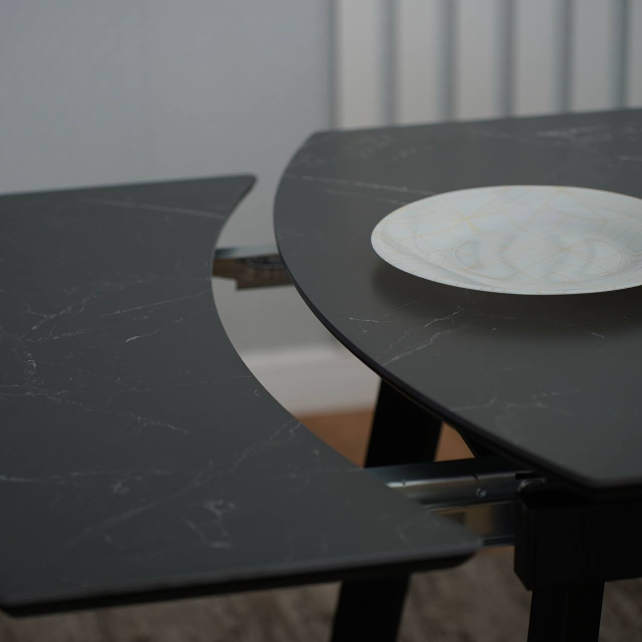 Этот материал не только прочный и долговечный, но и обладает прекрасной эстетикой, которая никого не оставит равнодушным. Регулируемые, и в тоже время, шарнирные опоры позволяют выставить стол по уровню на любой поверхности. Автоматический плавный механизм раздвижения с регулировкой. При раздвижении столешницы, рисунок сохраняется остается цельным. Оттенки: Серый, Белый, Черный. Вес стола: 87 кг. Максимальная нагрузка: 80 кг. Размеры: Длина: 1400/1900 мм. Ширина: 800 мм. Высота: 740 мм.